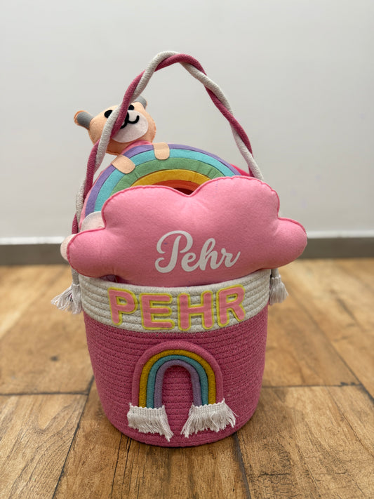 Rainbow Cuddles Carry Storage Basket (8x8")