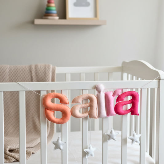 Rainbow Bear Personalized Nursery Wall Hanging – Felt Name Cloud
