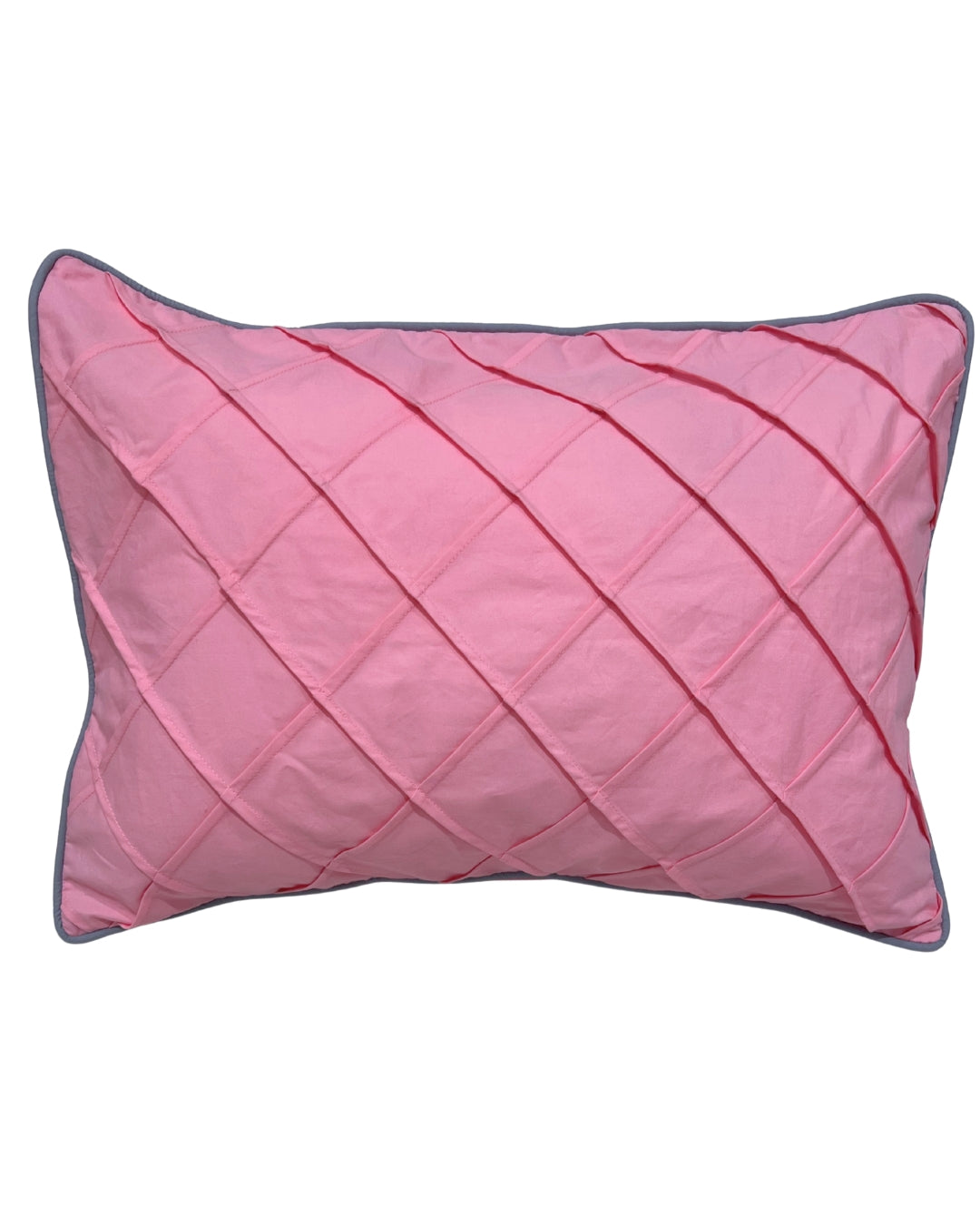 Elevate any nursery or kids’ room with this elegant pink cotton cushion cover, finished with dimensional diagonal pleats and contrast piping for a clean, modern look.