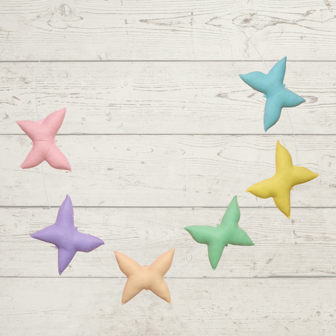 Add a touch of magical charm to your baby's room with our Pastel Butterfly Bunting – a handcrafted felt garland designed to elevate your nursery décor with softness, color, and whimsy.