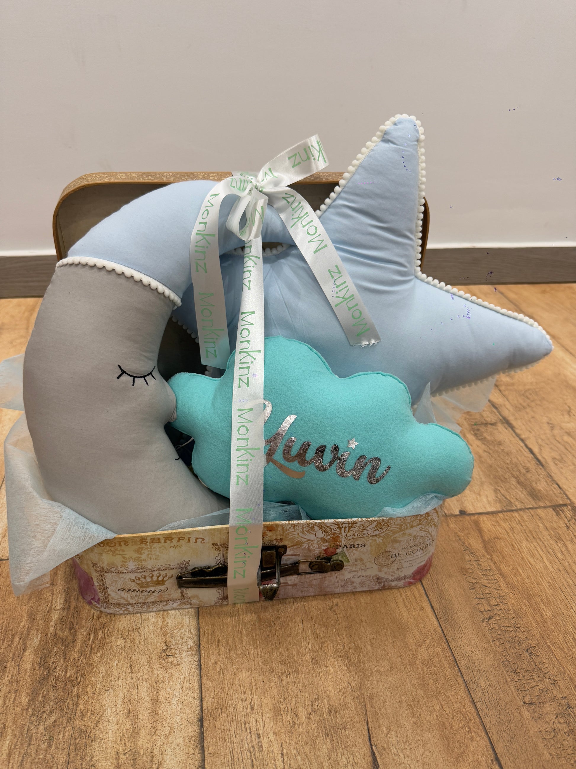 Bring a touch of whimsy to your little one's space with this Dreamy Cloud Hanging! Featuring a soft blue cloud, floating stars, and delicate smaller clouds, this handcrafted piece adds a soothing charm to nurseries, playrooms, or any cozy corner.