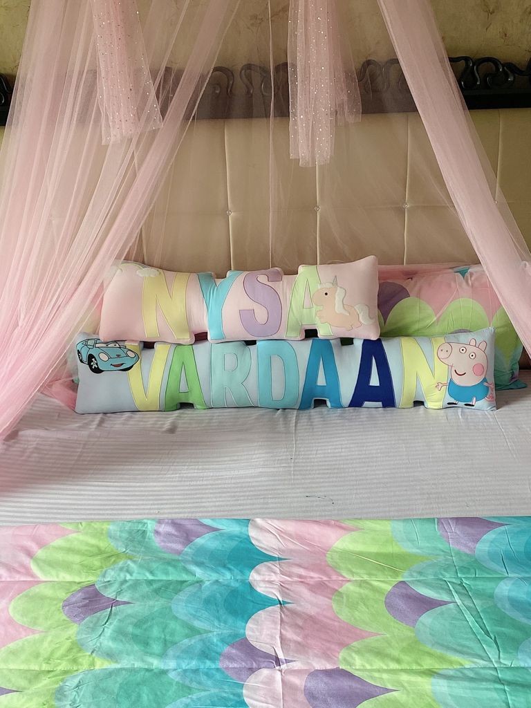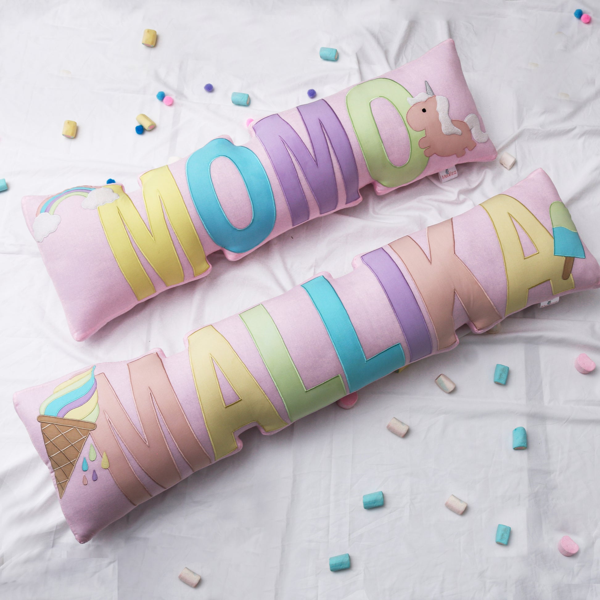 Bringing to you your little one's FAVOURITE cushion. Not only can you get it customised with their name, but also with any TWO OF THEIR FAVOURITE characters on either sides(see picture for reference).