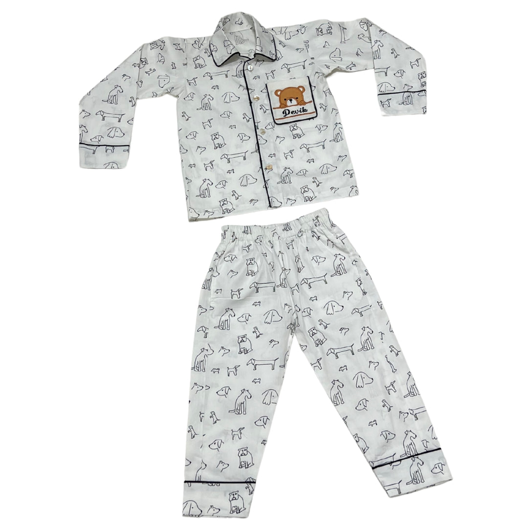 Make bedtime extra-special with our Cute Doggy Pyjama Set - a two-piece sleepwear ensemble crafted from 100% breathable cotton.