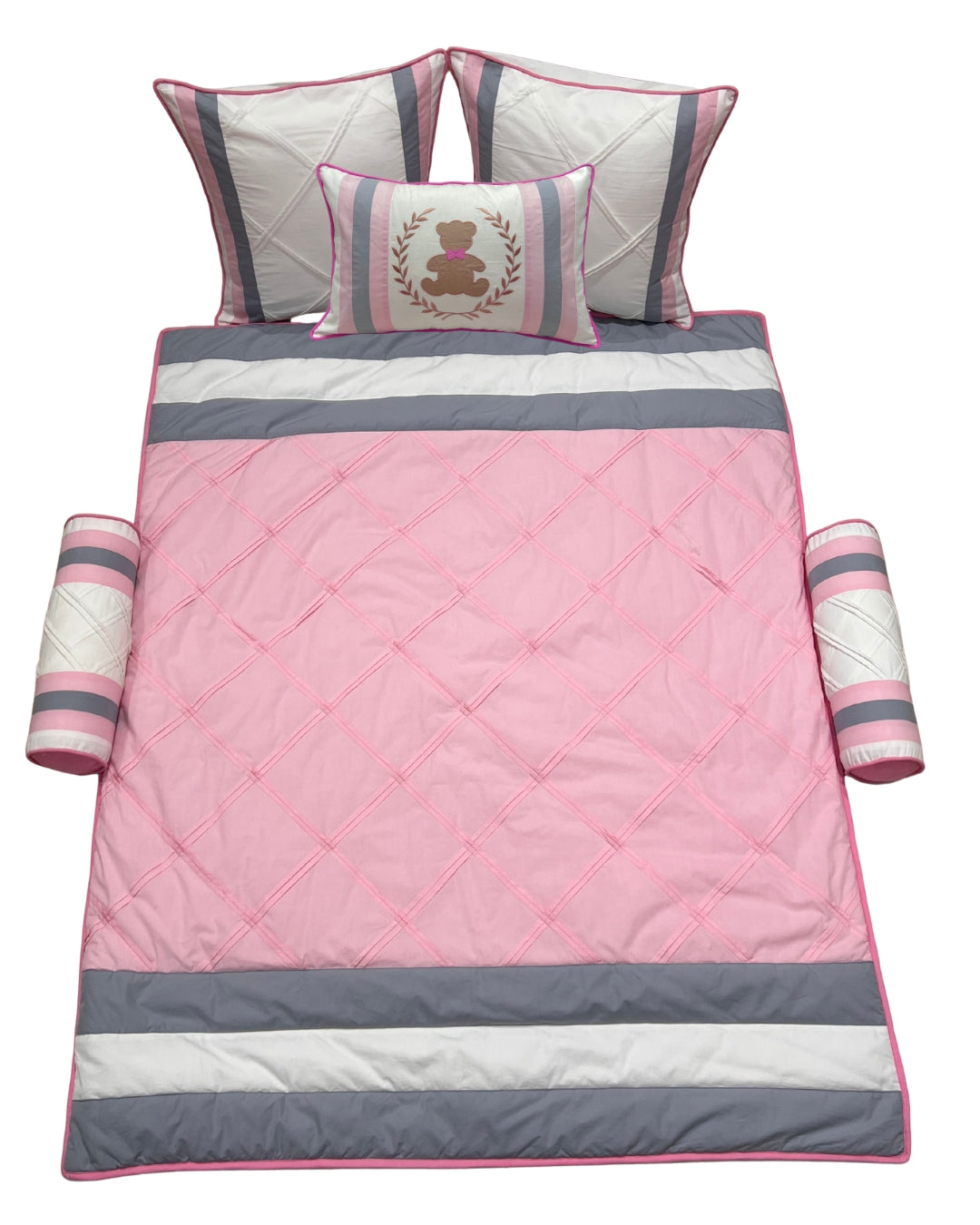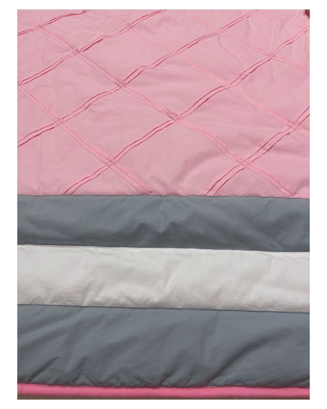 Wrap your little one in luxury with our Dreamy Stripes Quilt. Expertly crafted from 100% pure cotton, its soft, breathable fabric and refined stripe texture lend an elevated, contemporary touch to any nursery or bedroom. The quilt’s subtle pleated stripe detail adds visual depth without overwhelming, while the hypoallergenic polyfill batting ensures gentle warmth—perfect for sensitive skin and year-round comfort. Finished with precision quilting and a tailored edge, this quilt becomes the statement piece in modern baby bedding or a chic throw for toddler and teen rooms alike.