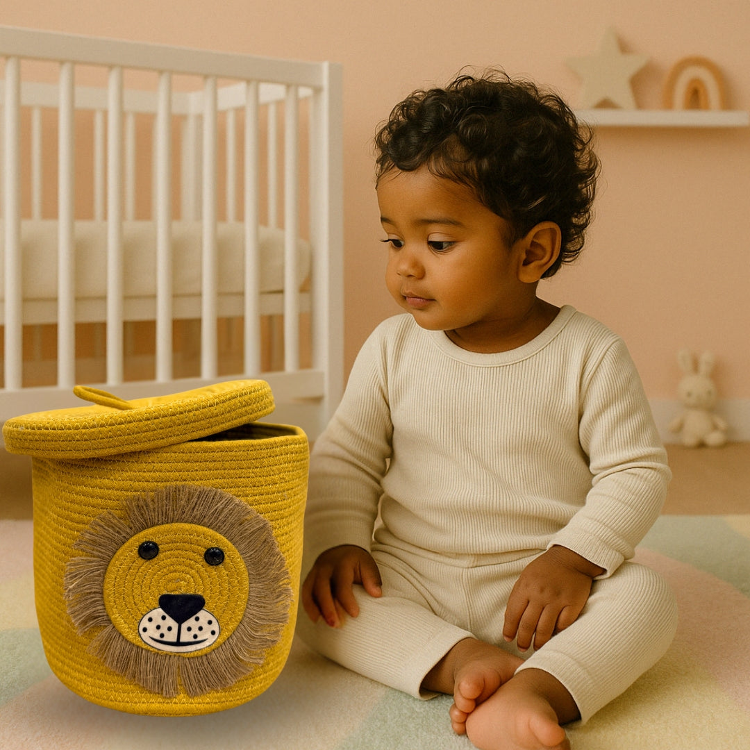 Add playful charm and vibrant style to your little one's room with our Little Roar Storage Basket. Expertly handcrafted from premium-quality cotton rope, this adorable lion-themed basket is the perfect companion for tidying toys, diapers, clothes, or laundry. The delightful lion design with its lovable mane instantly brings warmth and character to any nursery or kids' space. Make it extra special by personalizing it with your baby’s name! Perfect as a thoughtful gift on its own or as part of a customized hamper.