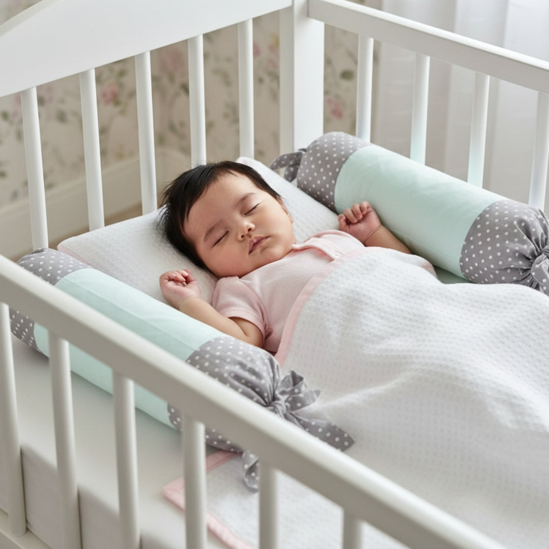 Add a touch of charm and comfort to your child's room with our Minty Dots Bolster Covers. Crafted from soft, breathable fabric, these covers feature a soothing mint green body paired with a playful grey polka dot border. The tie-up ends add an elegant touch while ensuring a snug fit.