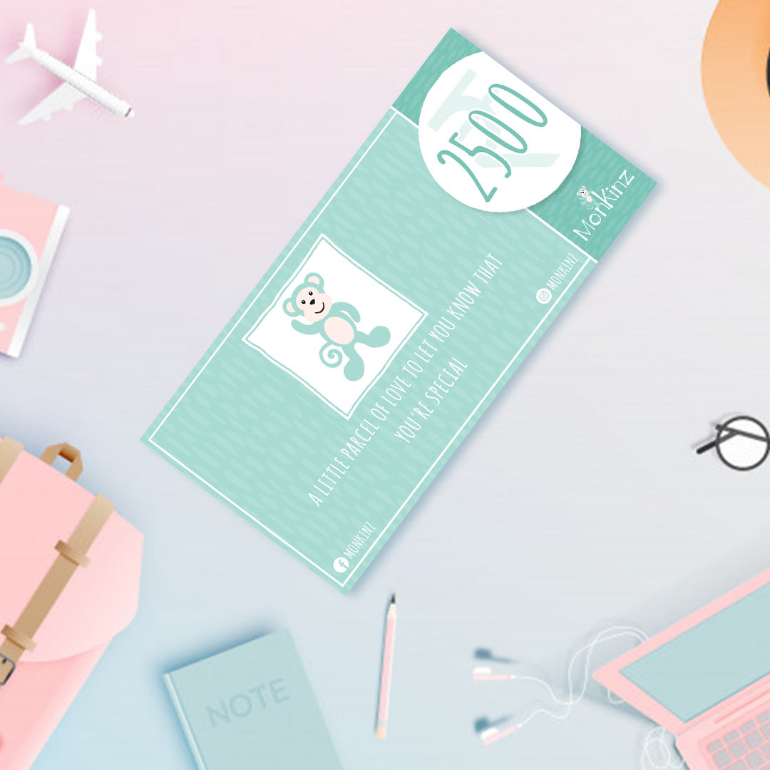 Monkinz gift card is that perfect gift which allows your loved one to purchase the appropriate gift for themselves on your behalf ! The recipient can use the same to order anything across our website and we deliver right up to their doorstep! Gifting never got easier!!