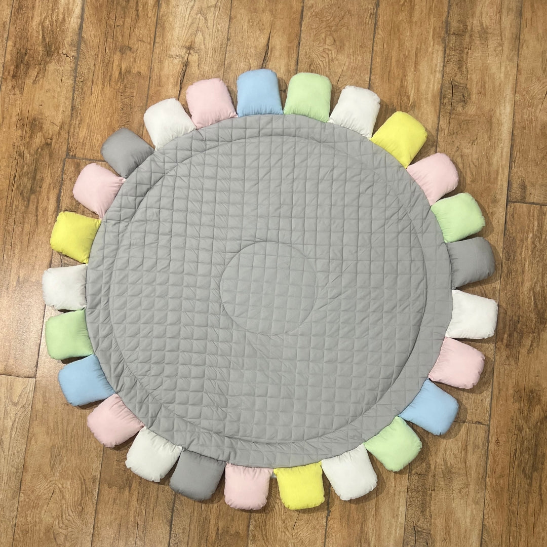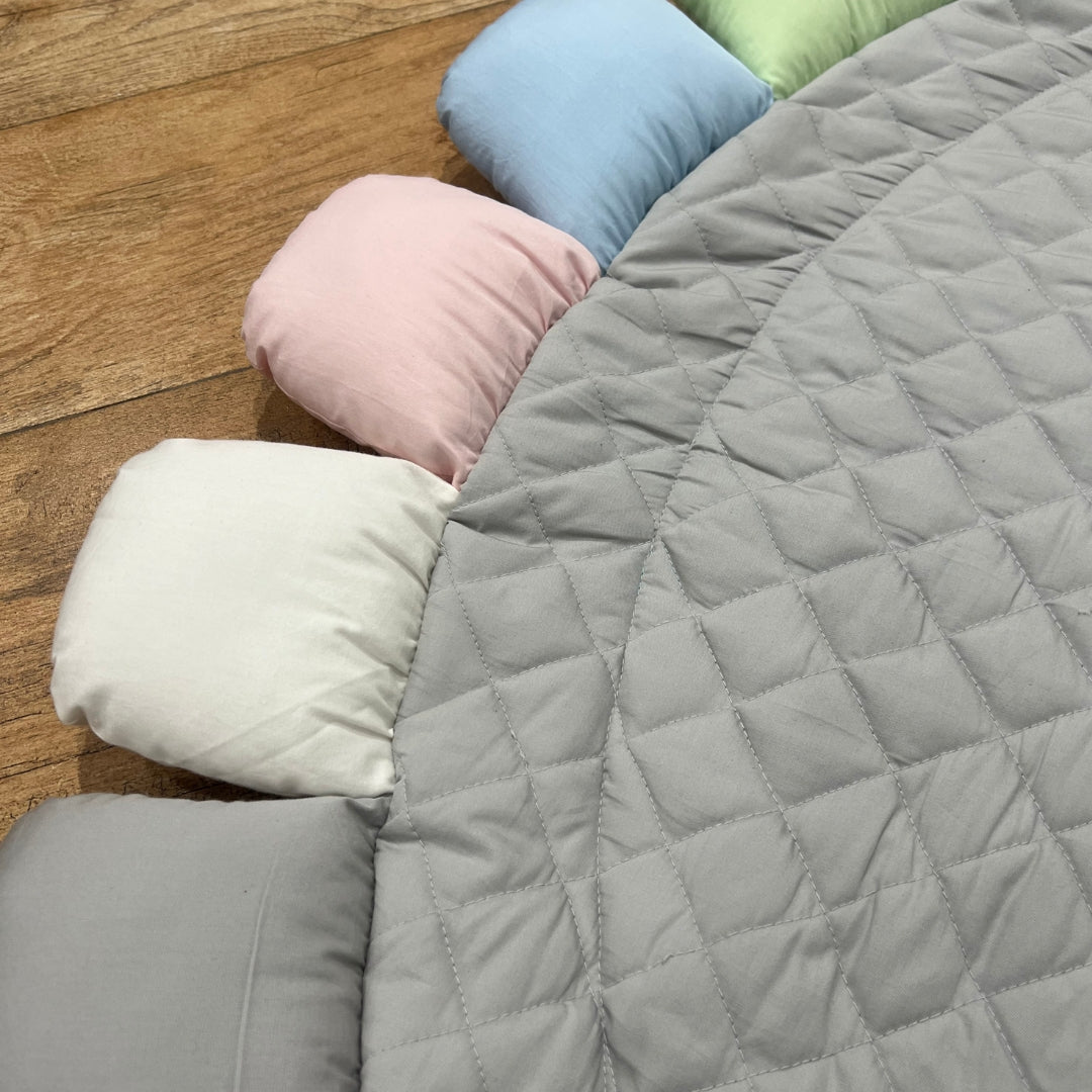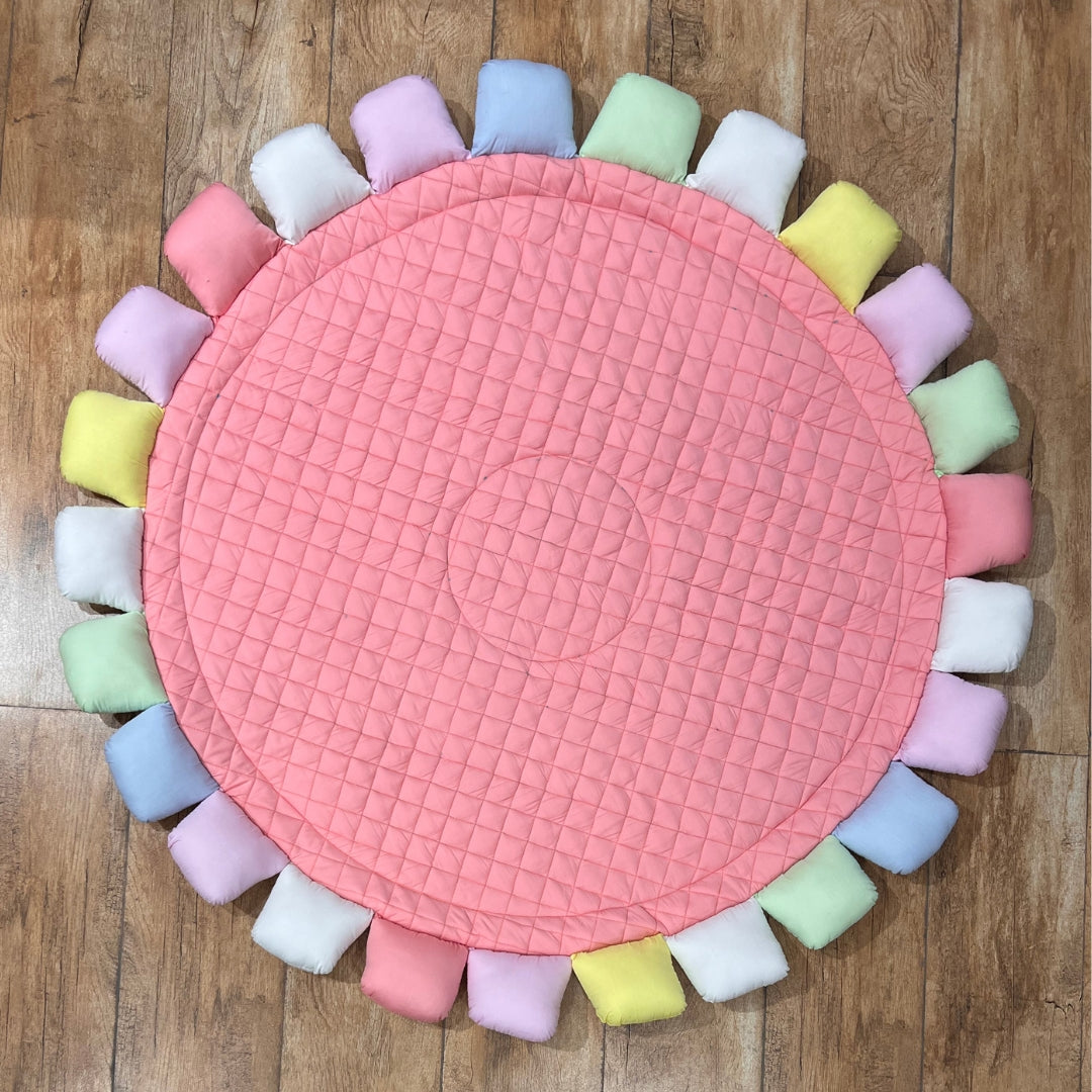 Let little imaginations bloom on the Petal Pop Cotton Play Mat, a 40″ round quilted floor mat edged with soft, pillowy “petals” in cheerful pastels. Crafted from 100% breathable cotton and filled with hypoallergenic polyfill, this play mat transforms any space into a cozy playroom oasis. Perfect for tummy time, story sessions, or building block kingdoms, Petal Pop adds a pop of color and comfort to nurseries, living rooms, and play nooks alike.