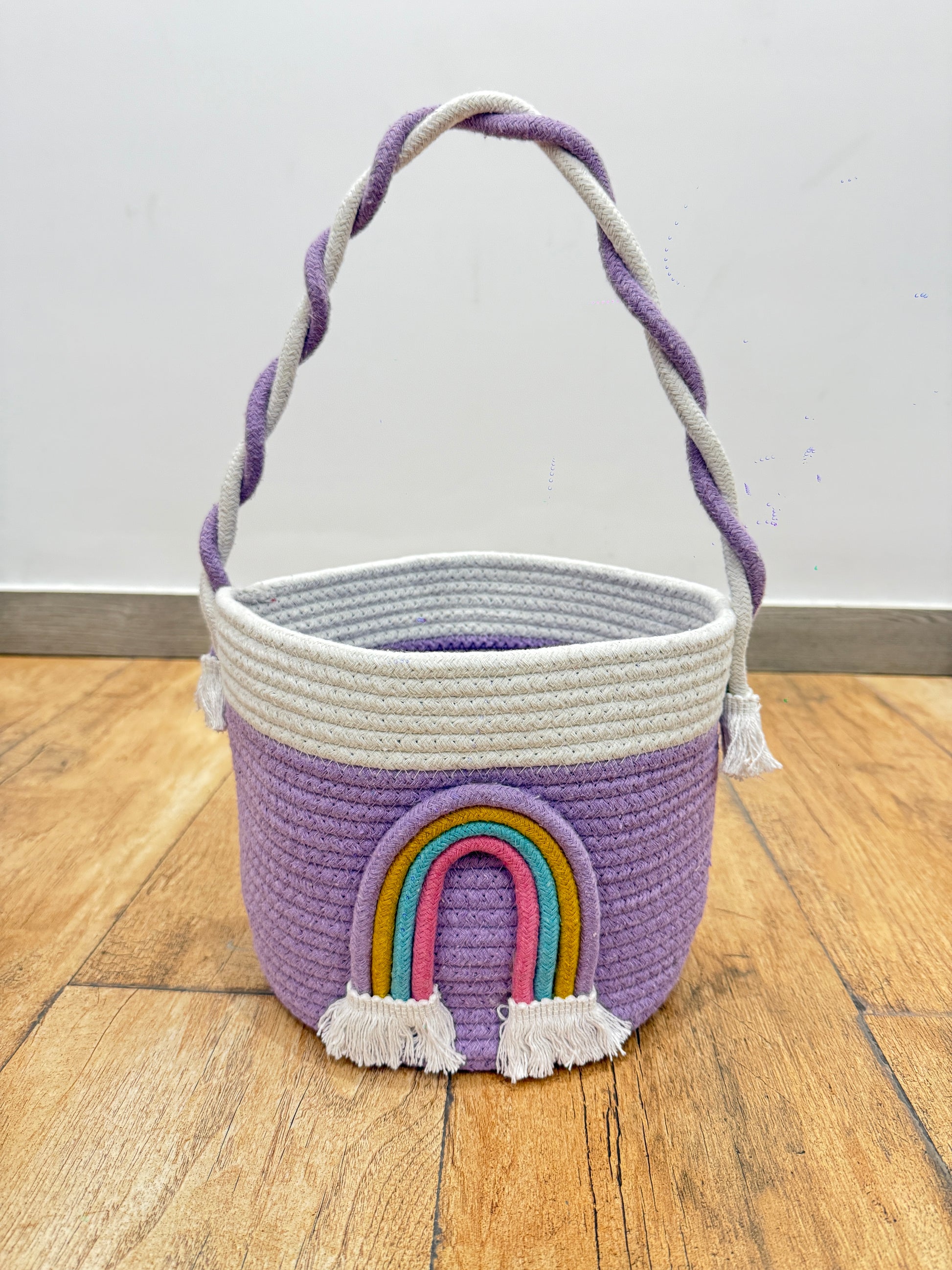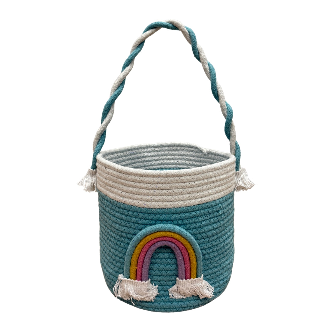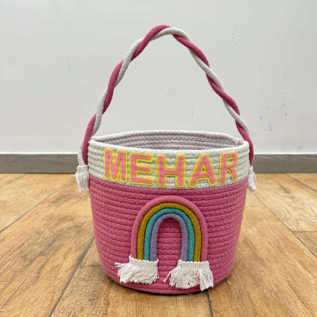 Let your little one tote around joy with our Rainbow Cuddles Carry Basket! Hand-braided from soft, natural cotton rope, this cheerful basket features a vibrant rainbow applique and a sturdy twisted handle — perfect for easy carrying by tiny hands. Whether it's for toy storage, Easter egg hunts, LEGO storage or stylish nursery organization, this basket is as functional as it is fun. Available in cheerful Blue and Pink, and customizable with your baby’s name, it also makes for a heartwarming gift or a charming addition to a personalized hamper.