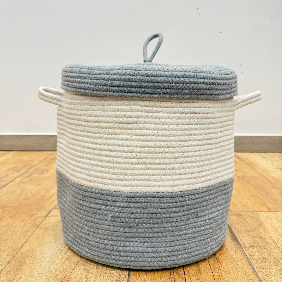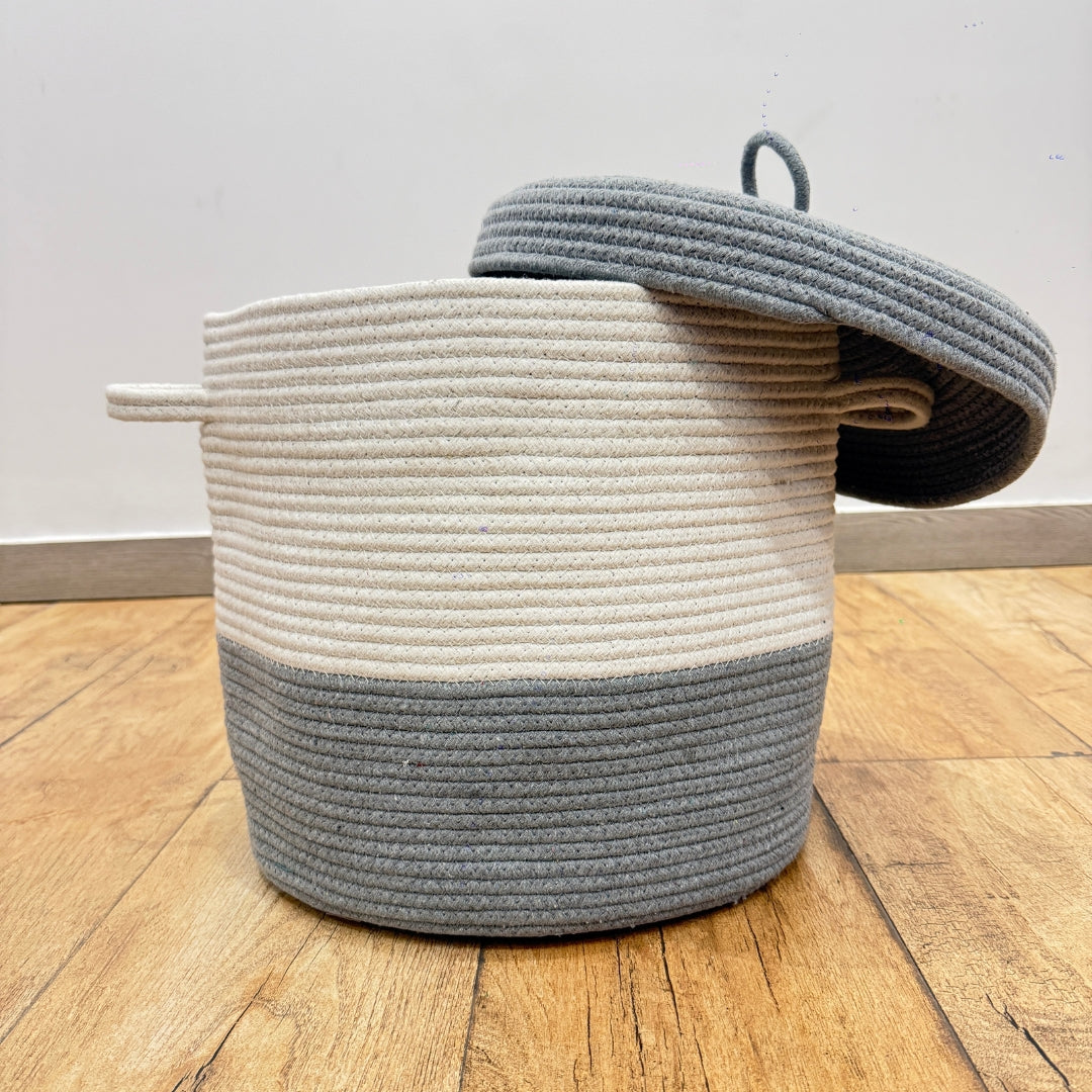 MonkiNook Cotton Rope Storage Basket with Lid – Cloud Grey