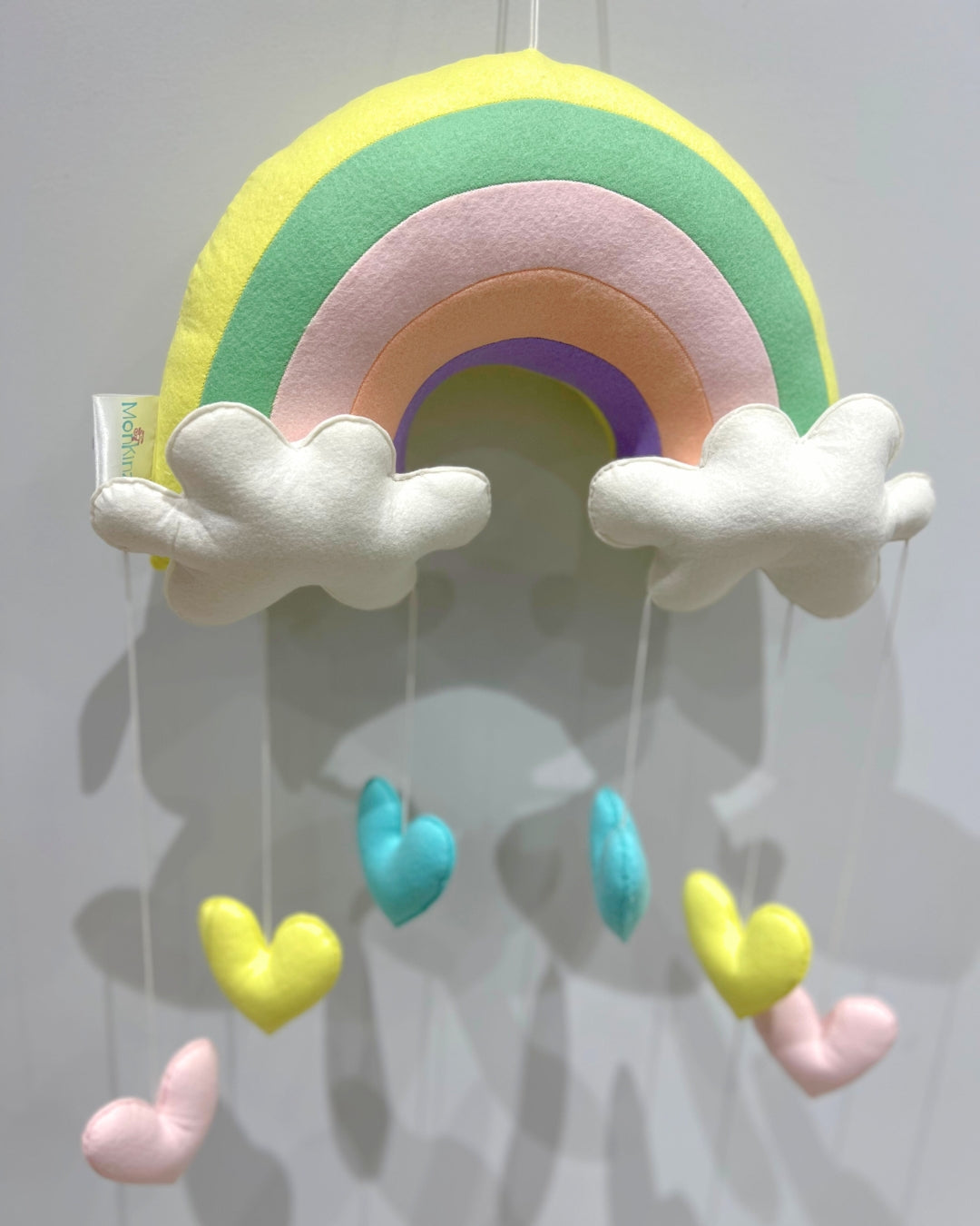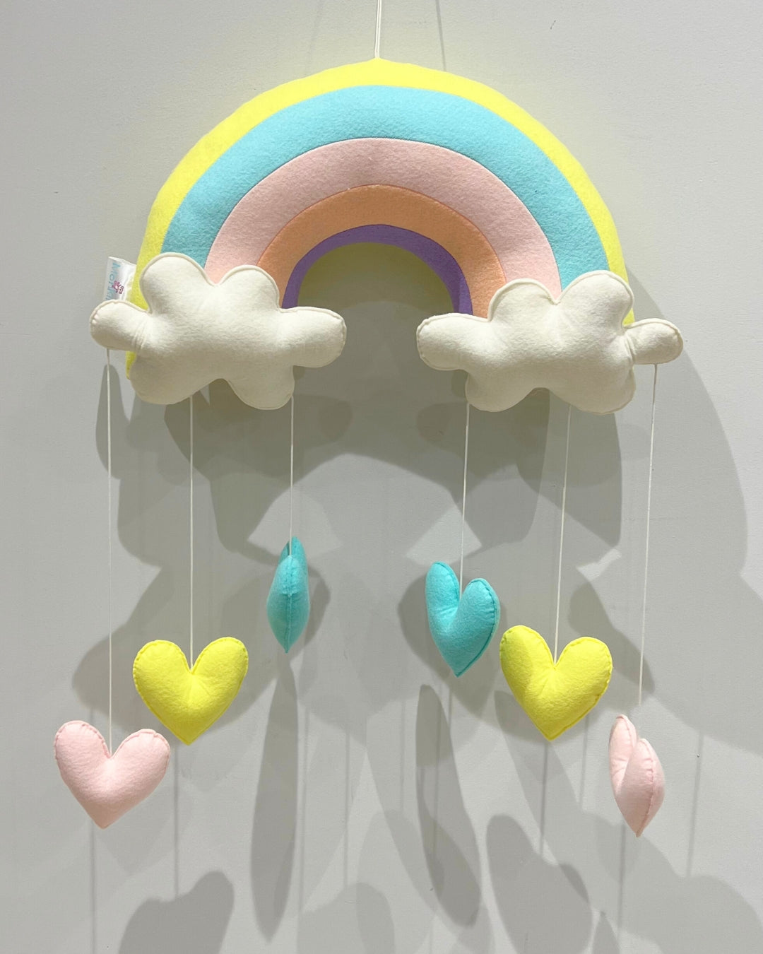 Bring instant joy to your little one’s room with our Rainbow & Hearts Nursery Wall Hanging. Handcrafted in soft felt, this lightweight piece features puffy clouds and dangling heart charms that add a gentle, whimsical touch to a crib wall, reading nook, or play corner. The soothing pastel palette makes it a beautiful, gender-neutral nursery decor pick and a thoughtful newborn or baby shower gift. Easy to hang and easy to love, it turns any space into a little slice of sunshine after the rain.
