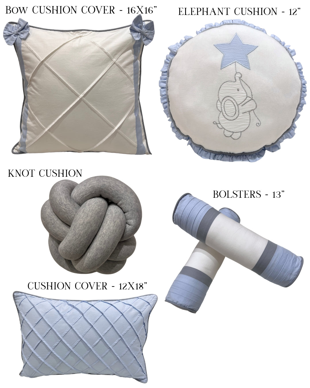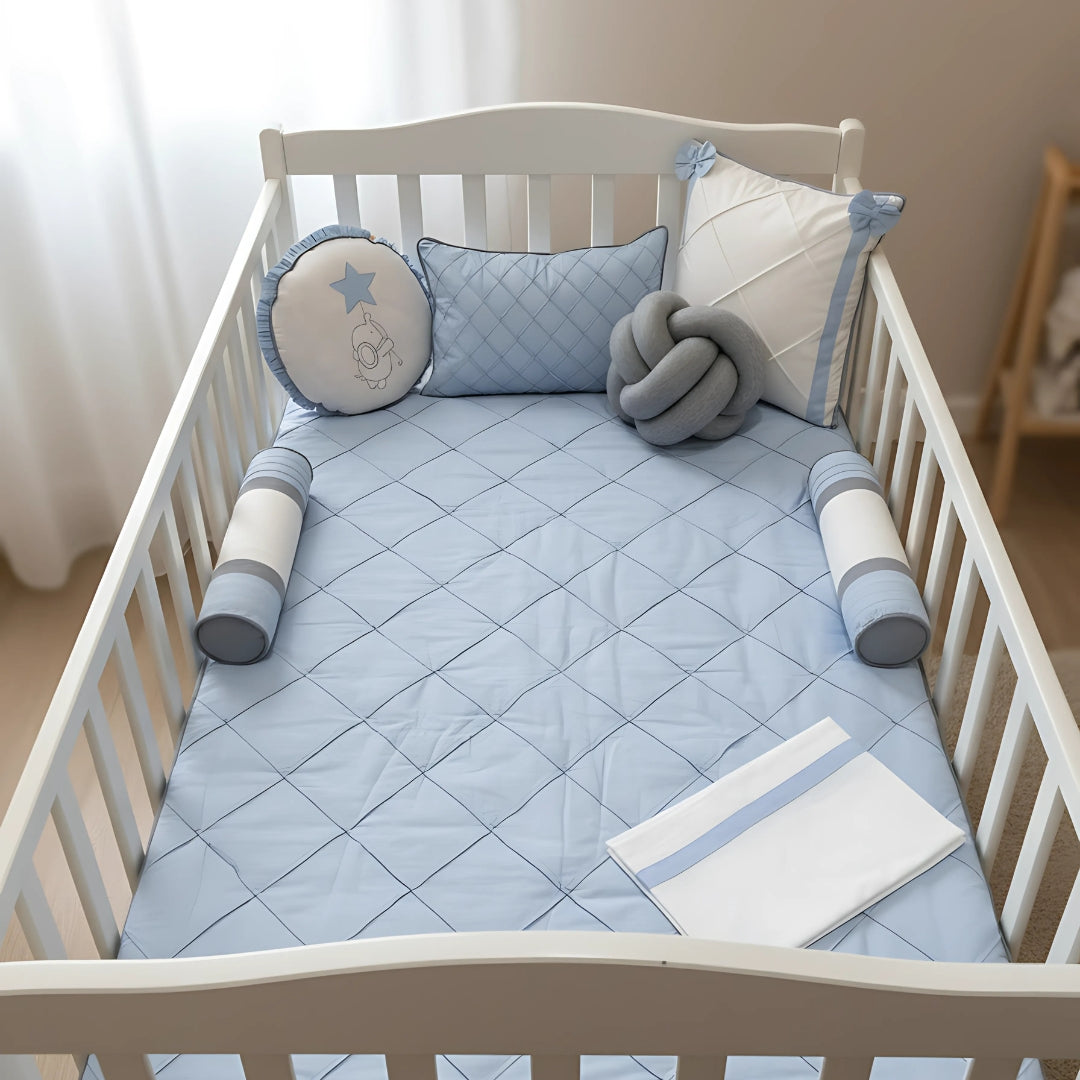 Transform your little one’s space into a cozy, storybook retreat with our Sweet Blues 8-Piece Bedding Collection. Each piece is thoughtfully crafted from 100% breathable cotton, making bedtime, nap time, and playtime moments extra soft and safe. Personalize your child’s space by choosing the full set for a coordinated look or mix & match individual pieces to suit your decor needs.